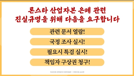 정의당 심상정 국회의원은 9월 21일 국회에서 열린 대정부 질문에서 한덕수 국무총리를 상대로 “론스타 산업자본 자백에도 정부가 은폐한 이유는 무엇인가?”를 따져 묻고 이에 대한 답변을 요구했다.