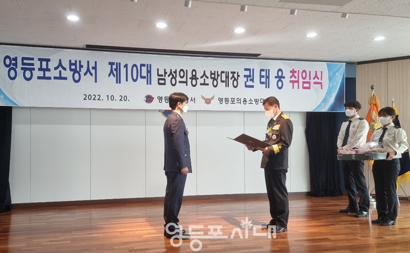 권태웅 영등포소방서 제10대 남성의용소방대장 취임식이 10월 20일 영등포소방서에서 열렸다.