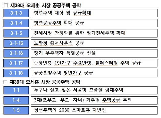 서울시의회 주택공간위원회 박승진 부위원장은 “주택정책실이 제출한 제38대와 제39대 공약 이행계획서를 분석한 결과 오세훈 시장의 공공주택 정책에 약자와의 동행은 없다”고 비판했다. 2021년 4·7 보궐선거와 2022년 6.1 지방선거에서 당선되며 제38대에 이어 제39대 서울시장에 취임한 오세훈 시장의 대표적인 공공주택 공약은 장기전세주택 공급 확대와 노후 임대주택 재정비 및 품질개선이다. 이를 위해 서울시는 2026년 상반기까지 6,794억원을 투입해 장기전세주택 7만 호를 공급하고, 2048년까지 12조 4,623억원을 들여 준공 30년 경과 34개 단지, 39,802호를 “타워팰리스 같은 임대주택”으로 재정비하는 공약 이행계획을 수립했다.