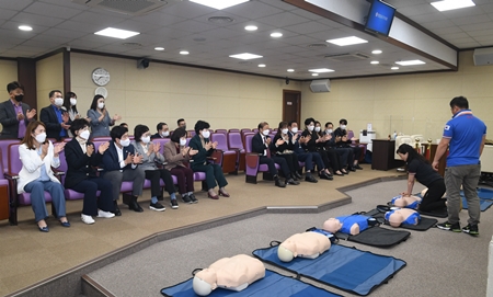 영등포보건소는 10월 28일 영등포구의회(의장 정선희) 본 회의장에서 심폐소생술 및 자동심장충격기 사용 등 응급처치 역량 강화 교육을 진행했다.