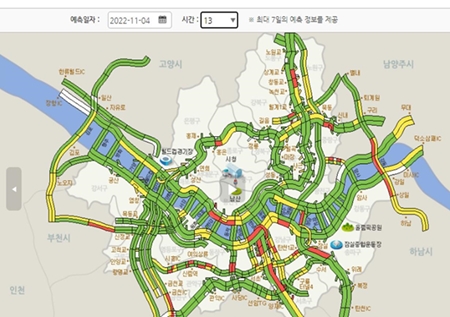 올림픽대로, 강변북로 등 8개 전용도로와 12개 주요 간선도로의 구간별 차량 정체 상황을 미리 알 수 있다면...