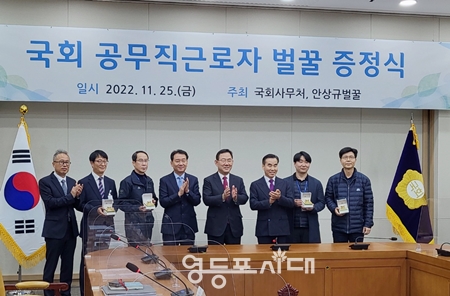 국회사무처와 안상규 벌꿀은 11월 25일 국회에서 ‘국회 공무직 근로자 벌꿀 증정식’을 열고 국회사무처 소속 공무직 근로자 대표 4인에게 안상규 벌꿀을 증정했다.