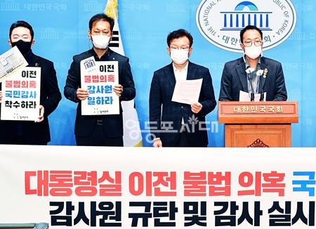 민주당 법제사법위원회 박주민, 권칠승 국회의원과 참여연대(아래 두 의원과 참여연대)는 11월 28일 국회 소통관에서 기자회견을 열고 “대통령실 이전 불법 의혹 국민감사 결정 지연에 대한 감사원 규탄 및 감사 실시”를 촉구했다.