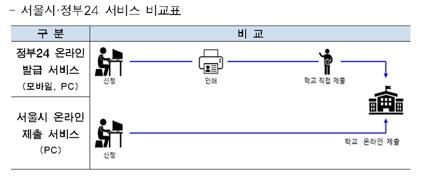 온라인 제출 서비스를 이용한 후 신청 기간 내에 서울시 범위에서 전입·출이 일어날 경우, 제출 서비스 재신청해야 하며 재신청을 못 할 때는 인편 통지를 받아 학교로 제출하면 된다.