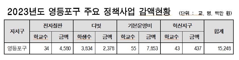 학교 기본운영비 1,829억 원을 포함하여 이번에 삭감된 5,688억 원은 일선 학교의 운영비와 교육환경 개선을 위한 사업비 등에 해당한다.