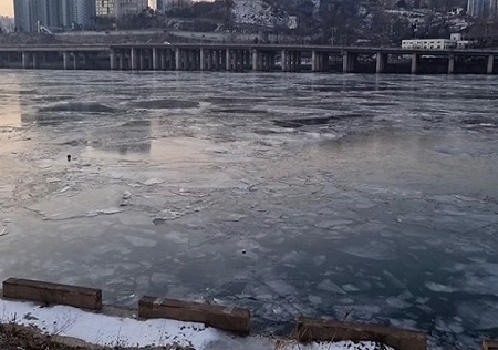 한강이 평년보다 16일, 2020년보다 15일, 2000년대 들어 네 번째로 빠르게 결빙됐다.