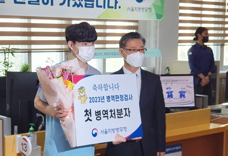 본인이 직접 병무청 누리집과 모바일 앱을 통해 병역판정검사 일자와 장소를 선택해서 받을 수 있는 병역판정검사는 19세(2004년생)가 되는 해에 병역을 감당할 수 있는지를 판정하기 위한 검사다. 올해부터는 병리 검사에서 알부민 검사와 고지혈증 관련 HDL 콜레스테롤 검사 등 2개 항목을 추가하여 모두 30개 항목에 대해 실시하고 있으며, 이를 통해서 신체검사의 정확성을 높이면서, 청년들의 건강증진에도 기여할 것으로 전망하고 있다. 병역판정검사는 기본검사(심리검사, 혈액‧소변검사, 영상의학검사, 신장‧체중 측정, 혈압 및 시력검사)와 정밀검사(내과, 외과, 정신건강의학과 등 과목별 질환에 대한 검사)로 나누어서 실시하며, 검사 종료 후 병리검사 결과 및 과목별 이상 유무에 대한 건강검진 결과를 제공한다. 김주영 서울지방병무청장은 올해 첫 병역판정검사에서 첫 번째로 현역 판정을 받은 병역의무자 마모 군(19세)에게 축하 꽃다발과 기념품을 증정하며 격려했다. 김 병무청장은 “모든 병역의무자가 공감할 수 있는 투명하고 공정한 병역판정검사가 되도록 최선을 다하겠다”라고 강조하고 “병역판정검사를 통해 병역이행자의 건강증진에도 기여할 수 있도록 노력할 것이라”고 말했다.