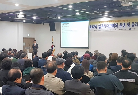 4시간에 걸쳐 특강, 공동주택 실태조사 사례, 윤리 교육