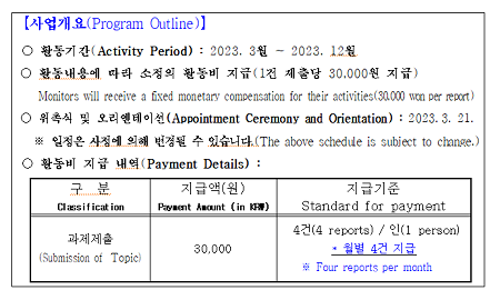 서울시는 외국인주민들이 서울에 살면서 겪는 고민과 생활불편을 당사자인 외국인주민의 시각에서 파악하고 해결을 도와줄 ‘외국인주민 서울생활 살피미’ 모니터링 요원 40명을 2월 27일(월)부터 3월9일(목)까지 모집한다. 올해 ‘외국인주민 서울생활 살피미’ 모집 기간은 2월 27일(월)부터 3월 9일(목)까지이며, 모집 인원은 40명으로, 서울 거주 1년 이상자로 한국어 또는 영어 구사 가능한 귀화인 포함 외국인 혹은 결혼이민자면 누구나 지원할 수 있다. 지원자에 대한 최종선발은 신청서 접수(이메일 접수) 후 서류심사를 통해 결정되며, 합격자 발표는 3.14.(화)까지 개별 통보될 예정이다. ‘외국인주민 서울생활 살피미’로 선발되면 올해 3월부터 12월까지 총 10개월 동안 활동할 예정이며, 소정의 활동비가 지급된다. 모니터링 보고서 1건당 30,000원의 활동비가 지급되며, 월 최대 4건 제출할 수 있다. 서울시는 모집단계에서 국가, 직능 등을 고려해서 내‧외국의 다양한 우수사례를 발굴하고 외국인주민 불편사항에 대한 많은 의견을 수렴할 예정이다. 외국인주민 서울생활 살피미 모집에 대한 자세한 사항은 서울시(www.seoul.go.kr) 및 서울특별시 한울타리 누리집에서 확인할 수 있다. 모집과 관련한 보다 자세한 사항은 가족다문화담당관( 02-2133-8705)으로 문의하면 된다.
