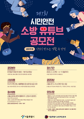영등포소방서(서장 김용태)는 ‘시민이 만드는 생활 속 안전’이라는 주제로 ‘제1회 시민 안전 소 방유튜브 공모전’을 개최한다고 밝혔다. 이번 공모 분야는 안전을 주제로 한 숏츠동영상(20초~1분 이내)이다. 서울 소재 대학에 재학 중이거나 서울 소재 직장에 근무하는 사람을 포함한 서울시민 누구나 (개인 또는 5인 이내 팀) 참여할 수 있다. 접수 기간은 4월 17일까지다. 접수는 서울소방재난본부 홈페이지에서 신청서 등 제출서류를 내려받아 예방과 홍보기획팀 이메일(Lss2090@seoul.go.kr)로 제출하면 된다. 소방서 관계자는 “제1회인 만큼 많은 시민이 생활 속 안전에 관하여 관심을 두고 참여해 주시길 바란다”고 전했다.