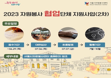 서울시자원봉사센터는 서울 소재의 봉사활동 단체 및 비영리 민간단체 등이며, ‘V세상’ 등록 단체 또는 등록 예정인 단체를 대항으로 2023 자원봉사 협업단체를 모집한다.