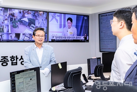 영등포구가 6월 20일, 최호권 구청장과 이인모 부구청장 등이 참석한 가운데 재난 안전 종합상황실 제막식을 개최하고 5인 근무 체계로 365일 24시간 구민 안전 지키기 강화에 나섰다.