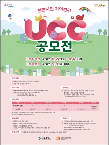 서울시는 2015년부터 <천만시민 기억친구 프로젝트>를 실시, 시민이 교육에 참여해 치매를 올바르게 이해하고 치매환자와 가족을 도와주는 ‘기억친구’와 ‘기억친구리더’를 양성하고 있다. 올 5월 기준 기억친구는 228,866명, 기억친구리더는 9,071명으로 총 23만 7,937명에 이른다. 이번 천만시민 기억친구 영상(UCC) 공모전은 서울시 치매관리사업에 관심있는 시민 누구나 참여할 수 있으며, 개인 또는 5인 이내 단체로 참여할 수 있다. 공모 주제는 ▴천만시민 기억친구 프로젝트 홍보 ▴기억친구, 기억친구리더 활동 소개 ▴서울시 치매관리사업(치매조기검진 중요성, 치매안심마을 등)을 활성화할 수 있는 내용이다. 영상은 광고, 영상 일기(V-log), 정보 그림(인포그래픽), 만화 영화(애니메이션), 드라마 등 다양한 형태로 2~3분 이내로 제작하면 된다. 접수는 6.26.부터 8.18.까지 참가신청서와 작품 파일을 서울시 광역치매센터 누리집(www.seouldementia.or.kr), 또는 담당자 전자우편(sdc3016@seouldementia.or.kr)으로 제출하면 된다. 자세한 내용은 서울시 광역치매센터 누리집에서 확인할 수 있다. 수상작은 총 9개 작품을 선정할 예정이다. 9월 중 심사를 거쳐 대상(1편) 100만 원, 최우수(1편) 50만 원, 우수상(2편) 각 30만 원, 장려상(5편) 각 10만 원의 상금과 각각 상장을 수여한다. 서울시는 올해 수상작을 서울시 광역치매센터 유튜브, 사회관계망서비스(SNS) 등에 홍보 콘텐츠로 반영하여 더욱 친근한 내용으로 시민의 치매 인식개선 홍보에 활용할 계획이다. 박유미 서울시 시민건강국장은 “이번 공모전을 통해 ‘치매 걱정없는 서울’을 만드는 데 더 많은 시민이 동참하길 기대한다”며 “서울시는 앞으로도 치매 인식개선을 위해 시민이 직접 참여할 수 있는 다양한 사업을 추진하겠다.”고 말했다.