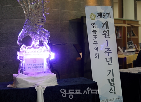 영등포구의회는 7월6일 영등포아트홀 전시실에서 제9대 영등포구의회 개원 1주년 기념식을 개최했다. 기념식에는 정선희 영등포구의회 의장과 최호권 영등포구청장, 김영주, 김민석 국회의원, 문병호, 박용찬 당협위원장과 박정자, 고기판, 이용주, 윤준용 전 구의회 의장, 김재진 시의원, 영등포구의회 전/현직 의원과 관계 공무원 등 200여 명이 참석한 가운데 열렸다. 참석자들은 이구동성으로 영등포구의회 제9대 개원 1주년 기념을 축하했지만, 입구에서는 추경 예산 삭감에 항의하는 피켓시위가 벌어졌다. 피켓시위에 참여한 관계자들은 한목소리로 “원칙 없는 추경 예산안 심사, 민생예산마저 외면한 삭감이다”라며 목소리를 높였다. 이날 (사)한국예술문화단체 총연합회 영등포지회, 영등포구체육회, 고엽제 전우회 영등포구지회 관계자들은 “보훈 정책 홀대하는 영등포구의회는 각성하라”, “국가보훈대상자 장례지원비 전액 삭감 영등포구의회는 상처받은 보훈 인들에게 사과하라”, “생활체육인 들을 볼모로 한 추경 예산 삭감!! 2만 5천여 체육인을 무시하는 처사로 체육인들 분통이 터진다” 등의 문구가 적힌 피켓을 들고 시위를 벌였다. 자신을 고엽제 전우회 회원 강**이라고 밝히고 “내 나이가 80에서 90이 다 되어간다. 그런데 이런 사람들을 위해 예산을 더 주어도 모자랄 판에 우리 예산을 전액 삭감했다”라며 “더 달라는 것 아니고 있는 그대로만이라도 달라는 것이다”라고 강조했다.