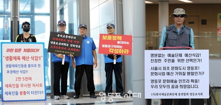 영등포구 문화·체육인, 예산 삭감 항의 피켓시위 벌여