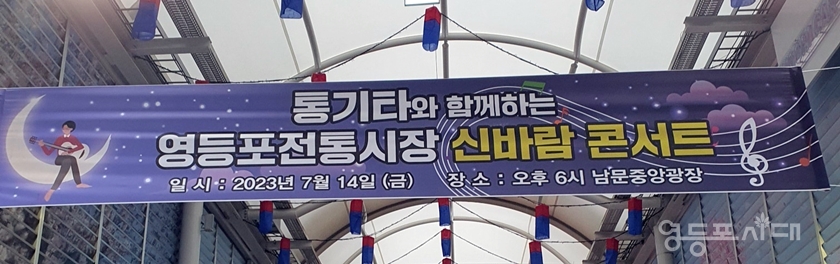 김태원 회장 “부족함이 있더라고 함께 즐겨주시면 좋겠다” 영등포전통시장(상인회장 김태원)은 7월 14일(금) 오후 6시부터 남문 중앙광장에서 ‘통기타와 함께하는 ‘영등포전통시장 신바람 콘서트’를 개최한다.