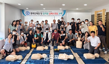 영등포구체육회는 7월 19일 영등포구 지역 내, 한 병원 교육실에서 종목별 단체장과 임직원 등 50여 명을 대상으로 심폐소생술 교육을 시행했다.