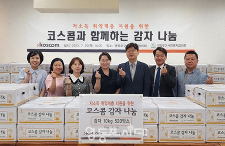 ㈜코스콤(대표이사 홍우선)은 7월 20일 영등포구사회복지협의회(회장 박영준)에 감자 10kg 520박스를 후원품으로 전달했다.