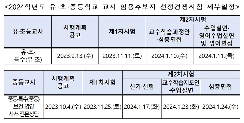 서울시교육청(교육감 조희연)이 8월9일 누리집을 통해 사전 예고한 ‘2024학년도 공립 유·초·특수(유·초)·중등학교 교사 임용후보자 선정경쟁시험
