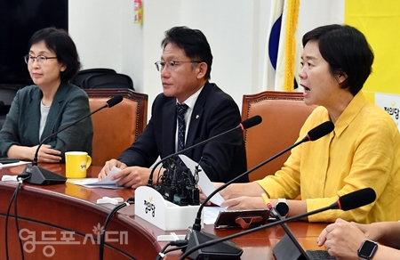 정의당 이정미 대표(사진 오른쪽)는 “성난 국민은 지난 주말 전국 각지에서 핵 오염수 투기 철회 집회를 열고, 침묵하는 정부를 향해 국민을 지킬 대안을 내놓으라고 요구했다. 그러나 윤석열 정부는 국민의 우려에 체포와 탄압으로 답했다”라며 “심지어 강은미 의원에 대한 연행 시도 사태마저 벌어졌다”라고 강하게 비판했다.