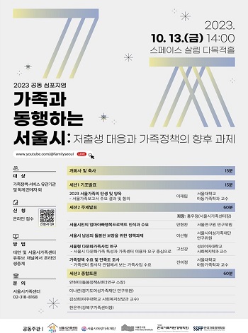 가족’의 관점에서 저출생 현상을 바라보고, 저출생 대응을 위한 가족정책과 서비스의 방향성을 논의하는 전문가 심포지엄이 열린다.