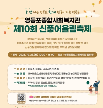 영등포종합사회복지관은 “10월 28일, 복지관 앞마당에서 ‘제10회 신풍어울림 축제’를 개최한다”라고 10월 23일 오전 밝혔다.