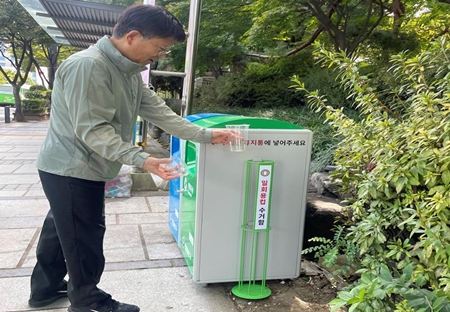 일회용 컵을 가지고 시내버스에 탑승할 수 없게 됨에 따라 일회용 컵이 가로쓰레기통에 버려지고 가로쓰레기통이 용량을 감당하지 못하면서 쓰레기통 주변에 버려지고 있다. 이에 영등포구의 버스정류장 앞에는 다른 자치구에서는 볼 수 없는 휴지통이 있다. 바로 일회용 컵 전용 수거대가 함께 있는 가로쓰레기통이다. 이에 영등포구(구청장 최호권)가 구민들이 보행 중 일회용 컵 등을 편리하게 분리 배출할 수 있도록 별도 수거대가 달린 가로쓰레기통을 버스정류장 앞에 설치했다. 이는 다른 자치구에서는 볼 수 없는 휴지통이다. 시범적으로 설치한 전용 수거대는 높이 800㎜, 폭 110㎜로, 거리를 지나는 구민들이 다량의 일회용 컵을 수거함 안에 차곡차곡 쌓아 쉽고 편리하게 배출할 수 있도록 했다. 또한 올바르게 배출할 수 있도록 가로쓰레기통 전면에 ‘뚜껑은 휴지통에 넣어주세요’ 문구와 ‘투입구 방향 화살표’가 붙어 있다. 영등포구는 이달에 일회용 전용 수거대가 부착된 가로쓰레기통을 유동 인구와 쓰레기 발생량이 많은 경방타임스퀘어 버스정류장, 영등포구청 버스정류장 등을 비롯한 5개소에 설치했다. 주기적으로 일회용 컵 전용 수거대를 세척하여 청결하게 관리할 계획이다. 영등포구는 시범운영 기간을 거쳐 횡단보도, 지하철 출입구를 중심으로 내년 20개소, 내후년 25개소에 확대 설치할 계획이다. 차길율 청소과장은 “앞으로도 구민 편의를 최우선으로 하는 생활 밀착 행정으로 더 깨끗하고 청결한 영등포구로 거듭나겠다”라고 밝혔다.