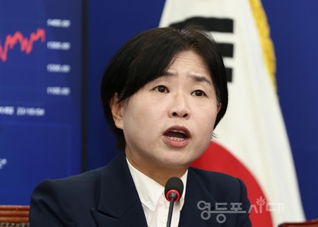 마지막 발언에 나선 서은숙 최고위원(왼쪽 사진)은 국민의힘 인요한 혁신위원장에 대해 “용산 대통령실의 작품이라는 의심이 들 수밖에 없도록 행동하고 말하고 있다”라며 “인요한 위원장을 국민의힘 혁신위원장으로 낙점한 사람은 과연 누구인가요?”라고 반문하며 비판했다.
