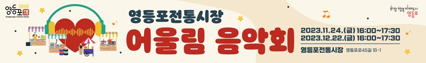 김태원 회장 “장바구니 증정이벤트... 관심과 이용” 부탁 영등포전통시장 상인회(회장 김태원)는 11월 24일과 12월 22일, 영등포전통시장에서 ‘영등포전통시장 어울림 음악회’를 개최한다.