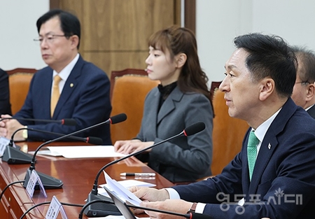 김기현 대표(사진 오른쪽)는 11월 20일 국회에서 열린 최고위원회에 윤석열 대통령의 해외 일정을 일일이 소개하고 “세계 주요국에서 윤석열 대통령을 국빈으로 초청하고, 우리나라와의 협력 증대를 모색하는 등 대한민국의 국제적 위상이 드높아지고 있다”라며 이같이 비판했다. 김기현 대표는 “민주당 김용민, 민형배 의원도 대통령을 탄핵하자는 말을 거리낌 없이 내뱉고 있다”라며 “민주당은 대통령을 향한 저주성 비난과 국민들이 선택한 윤석열 정부를 흔드는 것이 자신들의 존재 이유인 양 착각하는 모양이다”라고 목소리를 높였다. 김기현 대표는 “더구나 각종 불법과 비리 혐의로 재판 법정에 출석하느라 직무수행은 뒷전인 민주당 이재명 대표에게는 공천받기 위해 아부만 일삼고 있다”라며 “진짜 탄핵해야 할 대상에게는 아부하느라 여념이 없는 민주당은 결국 국민에게 탄핵받게 될 것으로 생각한다”라고 말했다. 김기현 대표는 내년도 예산과 관련해서도 민주당에 날을 세웠다. 김기현 대표는 “사사건건 틈만 나면 국회에서 완력 행사를 반복해 온 민주당이 내년도 예산안 역시 마음대로 자르고 더하고 하여서 힘으로 밀어붙이는 고질적 행태를 반복하고 있다”라며 “민주당이 내년도 나라 살림을 막무가내로 난도질하고 있다”라고 주장했다. 김기현 대표는 “특히 민주당의 청년 예산 삭감은 심각한 수준이다. 청년 취업 진로 및 일 경험 지원 예산은 2,382억 원을 일방적으로 전액 삭감시켰고, 공정 채용 문화 확산 예산 역시 일방적으로 감액시켰다”라며 “정부가 편성한 청년 예산의 80%가량이 삭감되었다는 분석도 언론을 통해 보도되고 있다”라고 밝혔다. 김기현 대표는 “민주당이 막무가내로 도려낸 빈 곳에 이재명 대표의 생색내기 예산으로 채우고 있다”라고 주장하고 “이재명 대표 홍보용인 지역화폐 예산을 민주당은 무려 7,053억 원이나 정부 동의도 없이 불법 증액시켰다”라고 비판했다. 김기현 대표는 민주당에 “대한민국을 이재명 대표의 나라라고 착각하고 계신 것인가. 내년도 나라 살림을 민주당의 총선 홍보비 정도로 생각하고 있는 것인가”라고 묻고 “국회 최고 의석수를 가지고 있는 만큼 민주당은 공당다운 자세로 돌아와 내년도 예산안 심사에 정상적으로 임해줄 것”을 촉구했다.