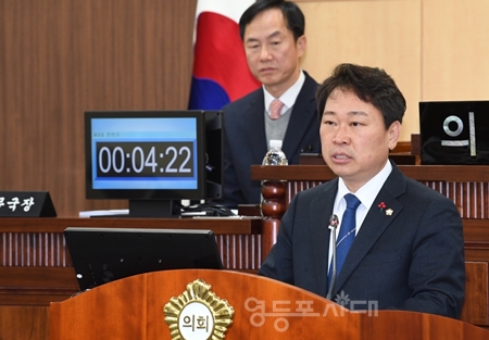 먼저 5분 발언에 나선 임헌호 의원(왼족 사진)은 “최근 경제 상황이 안팎으로 녹록지 않다”라고 운을 뗀 뒤 “경제정책 실패로 사상 최대인 60조가 넘는 세수 부족 사태가 발생했다”라며 “특히 중소상공인 비중이 큰 우리 영등포구의 경우 허리띠를 졸라매며 대비해야 할 위기 상황이다”라고 밝혔다.