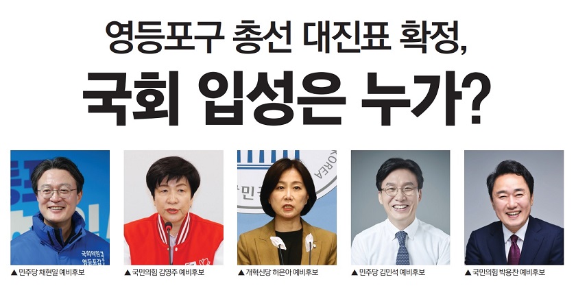 4월 10일 치러지는 제22대 국회의원 선거를 한 달여 앞두고 여야 후보가 속속 결정되고 있다. “비명횡사 친명 횡재”, ‘건생구팽’이라는 신조어가 공천 과정을 대변하는 가운데 영등포갑·을 선거구의 대진표가 확정됐다. 영등포갑·을 선거구의 대진표와, 예비 후보자의 정보, sns 포스팅, 공천 과정 등을 정리해 영등포시대 독자들에게 전한다. 먼저 영등포구 갑 선거구는 더불어민주당 채현일 후보와 민주당을 탈당한 후 국민의힘으로 당적을 옮긴 4선의 김영주 의원, 그리고 개혁신당의 허은아 수석대변인이 국회 입성을 놓고 한판 대결을 벌인다. 민주당 채현일(전 영등포구청장) 예비 후보는 4선의 김영주 의원이 민주당을 탈당하면서 자연스럽게 단수 공천을 받았다. 그러나 민주당을 탈당한 김영주 의원이 국민의힘에 입당해, 영등포갑에 전략공천을 받으면서 같은 당 출신끼리 겨뤄야 하는 부담과 함께 지지자들을 통합해 선거를 치러야 하는 숙제를 안게 됐다. 채현일 예비후보는 2월 26일 SNS를 통해 “공천 확정! 반드시 승리하겠다!!”라며 “윤석열 정권 2년! 무너진 민생과 민주주의, 정치를 반드시 복원해 내겠다”라고 밝혔다. 채현일 예비후보는 이어 “탁트인 영등포를 이뤄낸 경험과 추진력으로 새로운 영등포, 으뜸 도시 영등포 만들어내겠다”라며 “유능한 진보, 일하는 민주당의 가치를 보여주겠다. 단결이 통합이자 혁신이다. 영등포구갑 원팀, 이기는 민주당으로 하나 되어 4월 10일, 반드시 승리하겠다!”라고 강조했다.