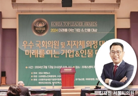 ‘2024 우수 국회의원과 지자체 의정 대상, 미래를 여는 기업 & 인물 대상’에서 ‘2024 대한민국 지자체 의정 대상’과 ‘2024 우수 시의원 의정 대상’을 동시에 수상한 김재진 시의원의 수상소감이다. 김재진 시의원은 3월 13일 SISA 대한뉴스가 주최하고 (사)대한노인중앙회와 (사)서울시민회 주관한 ‘2024 우수 국회의원과 지자체 의정 대상, 미래를 여는 기업 & 인물 대상’ 시상식에서 지자체 의정 대상’과 ‘2024 우수 시의원 의정 대상’ 수상했다. 수상자는 선정위원회가 국회의원, 지자체장, 지자체 의원, 경제인, 문화예술인 등으로 다양한 분야를 엄격히 평가 심사해 선정했다. 김재진 의원은 “서울은 세계적인 대도시로서 시민 삶의 질 향상에 대한 요구가 높아지고 있다”라며 “누구나 살고 싶은 서울이 될 수 있도록 지속 가능한 서울의 발전을 위한 무한 책임감을 느낀다”라고 밝혔다. 김재진 시의원은 “앞으로 다양한 의정활동으로 시의원 역할에 더욱 충실하겠다”라고 덧붙여 수상소감을 밝혔다. 김재진 의원은 서울시의회 환경수자원위원회 위원으로 대기질, 실내공기 질, 공원녹지, 아리수 품질향상 등 환경에 대해 면밀한 의정활동을 하고 있다. 또한 도시 안에서 중요한 환경 중의 하나인 교통에 관한 관심이 높아 신호기 개선, 지상철도 지하화, 보행로 개선에 꾸준히 노력하고 있다.