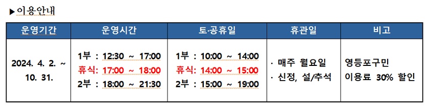 특히, 3월 26일(화) 이사장을 비롯한 공단 임직원들이 미끄럼방지와 청결한 환경을 위해 탄성바닥매트 물청소를 직접 시행하며 개장 준비를 마무리했다.