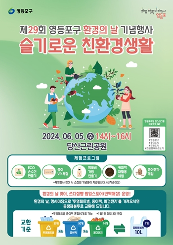 영등포구민들에게 ‘슬기로운 친환경 생활’을 주제로 환경에 관한 관심을 높이고, 일상 속 환경보호 실천 문화 확산을 위한‘환경의 날 기념행사’가 열린다.