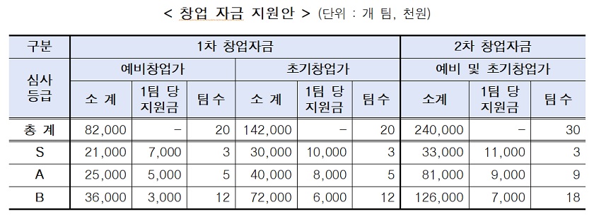 가장 주목받는 지원 사항인 총 4억 6,500만 원의 창업자금은 1, 2차 경진대회 심사 결과 등급에 따라 각각 7월, 11월 중 2차례에 나누어 차등 지급 예정이다.