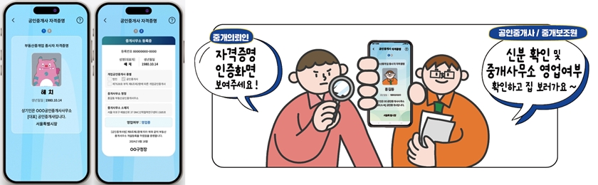 시민은 부동산 거래 시 해당 공인중개사에 인증화면 요구 그간 무자격·무등록자의 중개행위가 성행하면서 피해사례가 잇따르자, 중개사고 예방을 위한 자격증명 제도로 명찰제, 입구 부착 등의 방안이 시행됐지만, 실효성 측면에서 한계가 있어 왔다.
