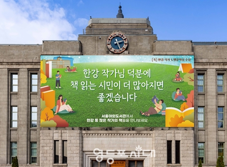 ‘꿈새김판’은 시민에게 따뜻한 위로와 희망의 마음을 전하고 시민들이 삶 속에서 공감할 수 있는 메시지를 나누기 위해 서울시가 2013년 6월 서울도서관 정면 외벽에 설치한 대형 글판이다. 이날 새롭게 단장해 선보인 ‘꿈새김판’은 한강 작가의 노벨문학상 수상으로 한국 문학작품과 독서에 대한 국민적 관심도가 높아진 만큼, 이번 꿈새김판에는 가을을 배경으로 서울야외도서관에서 시민들이 여유롭게 독서를 즐기는 모습과 함께 한강 작가의 수상을 축하하는 메시지를 담았다. 소설가 한강(54)은 지난 10일 대한민국 최초이자 아시아 여성 최초로 노벨문학상을 수상했다. 작가는 1994년 서울신문 신춘문예 소설 부문에 단편소설 「붉은 닻」이 당선되며 소설가로 본격적인 활동을 시작했다. 2016년 「채식주의자」로 세계 3대 문학상인 부커 상을 받았으며, 지난해에는 「작별하지 않는다」로 프랑스 4대 문학상인 메디치 상을 수상했다 서울시는 10월 11일부터 서울야외도서관 세 곳(책읽는 서울광장, 광화문 책마당, 책읽는 맑은냇가)에서 ‘채식주의자’, ‘소년이 온다’를 포함한 한강 작가의 저서 10종 특별 전시도 함께 운영하고 있다. 서울야외도서관 특별 전시는 한국어를 비롯하여 영어, 일본어, 중국어, 아랍어, 그리스어 등 20개의 다양한 언어로 번역된 10종의 도서로 구성되어 있다. 서울야외도서관에 방문한 누구나 읽을 수 있으며, 올해 서울야외도서관 운영 종료일까지 전시가 계속될 예정이다. 오세훈 서울시장은 “한강 작가의 노벨문학상 수상은 우리 문화가 세계문화의 중심으로 나아가는 새로운 지평을 열어준 것으로, 한국 문학의 힘이 언어의 장벽을 넘어 세계인의 마음을 움직이는 감동을 전할 수 있다는 것을 보여준 증거”라며 “서울시가 앞으로도 창작의 열정을 품고 나아가는 이들에게 든든한 발판이 될 것”이라고 말했다.
