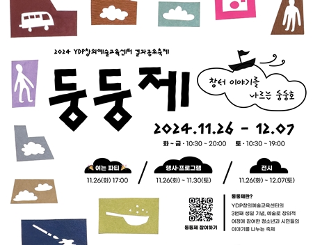 영등포문화재단(대표이사 이건왕)은 “11월 26일(화)부터 12월 7일(토)까지 ‘2024 YDP창의예술교육센터 결과공유축제 둥둥제’를 개최한다”고 밝혔다. 영등포문화재단에 따르면 이번 공유축제는 시민 참여를 중심으로 한 아카이브 전시, 체험 프로그램, 축하공연과 전문가 포럼 등 다채로운 행사가 진행될 예정이다. 특히, 청소년과 시민이 적정예술그룹 피스오브피스와 함께 일상에서 버려지는 자원과 재료를 재활용하여 직접 구성하는 아카이브 전시가 열린다. 또 축하공연과 미니콘서트, 배움의 여정을 주제로 한 전문가 포럼과 청소년과 시민 프로젝트 결과공유회도 진행된다. 행사 동안 YDP창의예술교육센터의 창작공간을 연계한 다양한 체험프로그램으로 비건베이킹, 전통 탈춤, 가죽공예, 하우스댄스, 섬유공예 등이 열린다. 프로그램 외에도 지역 공방과의 협력을 통해 도자기, 비누, 스테인드글라스 등 제작 체험도 할 수 있다. 이 프로그램은 초등학교 1학년부터 청소년, 성인까지 사전 신청을 통해 참여할 수 있다.