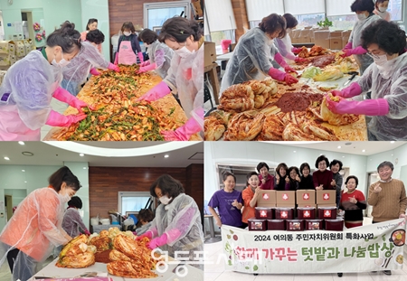 서울 영등포구 여의동 주민자치위원회 복지분과위원들이 여의동 지역 내 소외된 홀몸 어르신과 경로당(시범, 미성, 광장)에 직접 키워 담근 김장 김치를 전달했다.