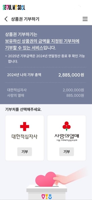 기부 기능 추가, 대한적십자사‧사랑의열매 시작으로 기부처 확대