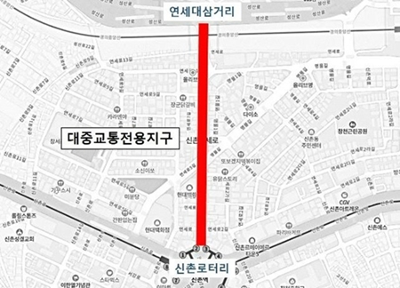 ‘연세로 대중교통전용지구’가 내년 1월 1일 자로 지정이 해제될 예정이다.