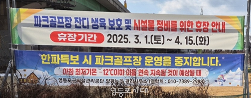 영등포구 시설관리공단에 따르면 휴장 기간에 양평누리체육공원 파크골프장의 잔디 생육 보호와 시설물을 정비한다.