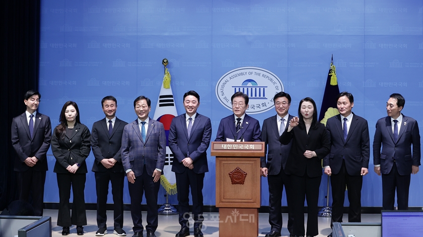 선대본부장, 윤호중, 공보단장 박수현, 대변인 강유정 임명 이재명 민주당 대선 예비후보가 4월 11일 국회 소통관에서 기자회견을 열고 제21대 대선 예비후보 슬로건과 선거대책본부 인선을 발표했다.