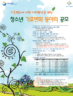 기상청(청장 이일수)은 4월 26일까지 기후변화에 대한 이해를 확산하고 기상과학 인재를 육성하기 위해 기상・기후 연구 활동을 지원하는 ‘청소년 기후변화 동아리’를 전국의 중・고등학생을 대상으로 공모한다고 밝혔다.