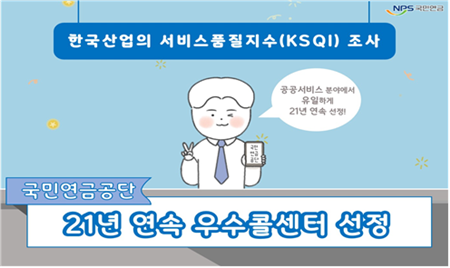 국민연금공단은 1355 고객센터가 2025년 한국산업의 서비스품질지수(KSQI) 콜센터 부문(아래 서비스품질지수)에서 21년 연속 우수콜센터로 선정됐다고 5월 21일 밝혔다.