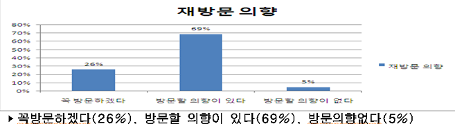 33만명 발길, 89% 만족, 95% 재방문 의지 시민청을 방문한 시민을 대상으로 한 설문조사 결과 89%가 만족을, 95%가 재방문 의지가 있는 것으로 나타났다.