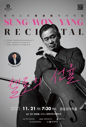 영등포문화재단(대표이사 이건왕)은 “11월 21일 영등포아트홀 기획공연 ‘첼로의 선율 – 첼리스트 양성원 리사이틀’을 선보인다”라고 밝혔다.
