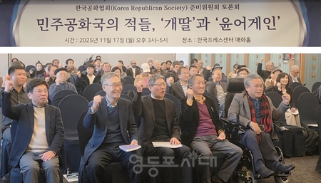 작금의 대한민국이 민주화 과정을 거치면서 민주주의의 외형적·절차적 요소, 즉 선거, 정당, 의회, 법치 등 제도적 틀과 절차를 갖춘 형식적 민주주의는 이뤘으나, 갈등 지수 세계 1위 국가라는 지표를 지닌 것에서 드러나듯 공화국이라 부르기엔 미흡하기만 하다. 민주공화국이라는 헌법의 정신이 온전히 실현되지 않고 있는 반쪽 국가인 것이다. 거기에다 그 반쪽인 민주주의조차 파국 지경으로 치닫고 있는 적대적 진영정치에서 드러나듯 심각하게 병들어 있다. 민주주의는 ‘우리와 다른 이’와 함께 살며 서로 도움이 되는 공존의 예술(art)인데, 여의도 안에서의 민주주의에서는 상대를 궤멸시키고 우리만 홀로 살아보겠다는 기술(art)만 횡행하고 있다. 이렇게 갈라치기와 적대감으로 가득 차 있어 ‘기본’을 잃어버린 오도된 민주주의에 온 나라가 병들어 가고 있다. 결국 대한민국은 헌법 제1조 ①항을 무색게 하는 ‘반헌법 국가’로 치닫고 있다. 마침/ 이런 민주공화국 위기 시국에 ‘한국공화협회준비위원회’가 지난 11월 17일 한국프레스센터 매화홀에서 <민주공화국의 적들, ‘개딸’과 ‘윤어게인’>을 주제로 토론회를 개최했다. 필자 역시 공감하기에 함께 하고 있지만, 언필칭 ‘대한민국 민주공화국’에서 ‘공화(共和)’를 꿈꾸는 이들이 한자리에 모였다.