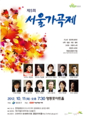 아름다운 우리 시를 가곡으로 만들어 정상급 성악가의 목소리를 통해 들려주는 ‘서울 가곡제’가 오는 11일 열린다. 영등포구가 11일 오후 7시 30분 영등포아트홀에서 '서울 가곡제'를 연다. 우리 정서에 맞는 아름다운 국민 가곡 보존을 위해 지난 2008년 시작된 서울 가곡제는 올해로 5회째다.